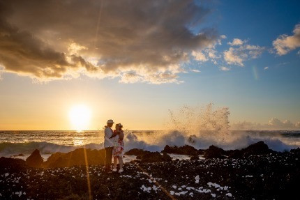 Escape the crowds at Kukio Beach, a dazzling gem on the Big Island. This secluded paradise, just steps from the Four Seasons, offers effortless access, turquoise waters, and sunshine year-round - making it our top recommendation for an unforgettable wedding ceremony